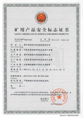 矿用产品安全标志证书